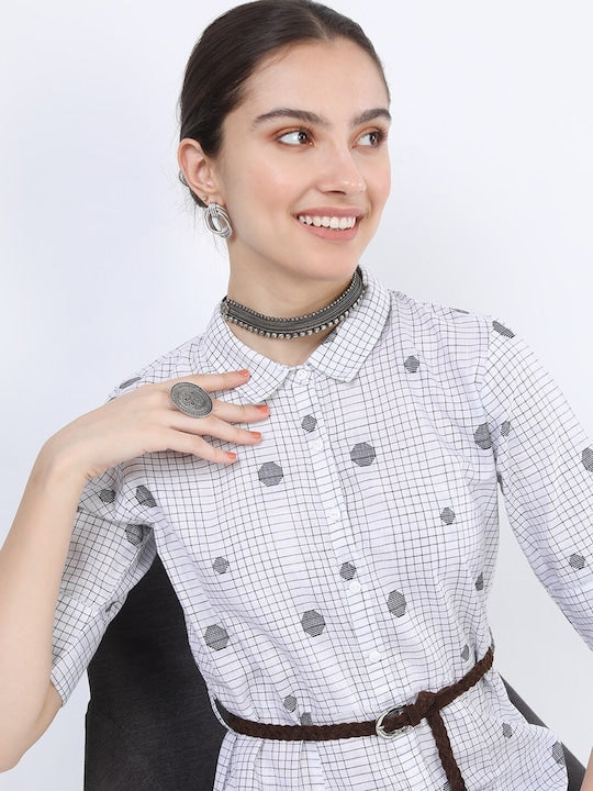 - White conversational print a-line dress
