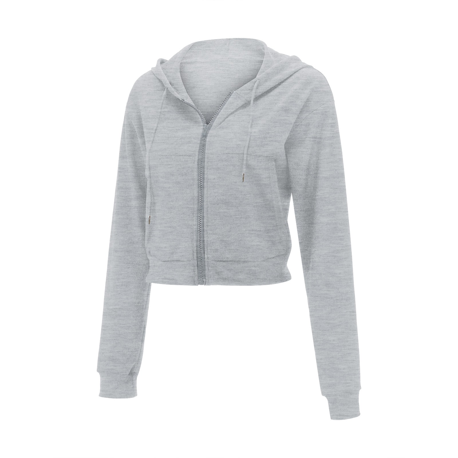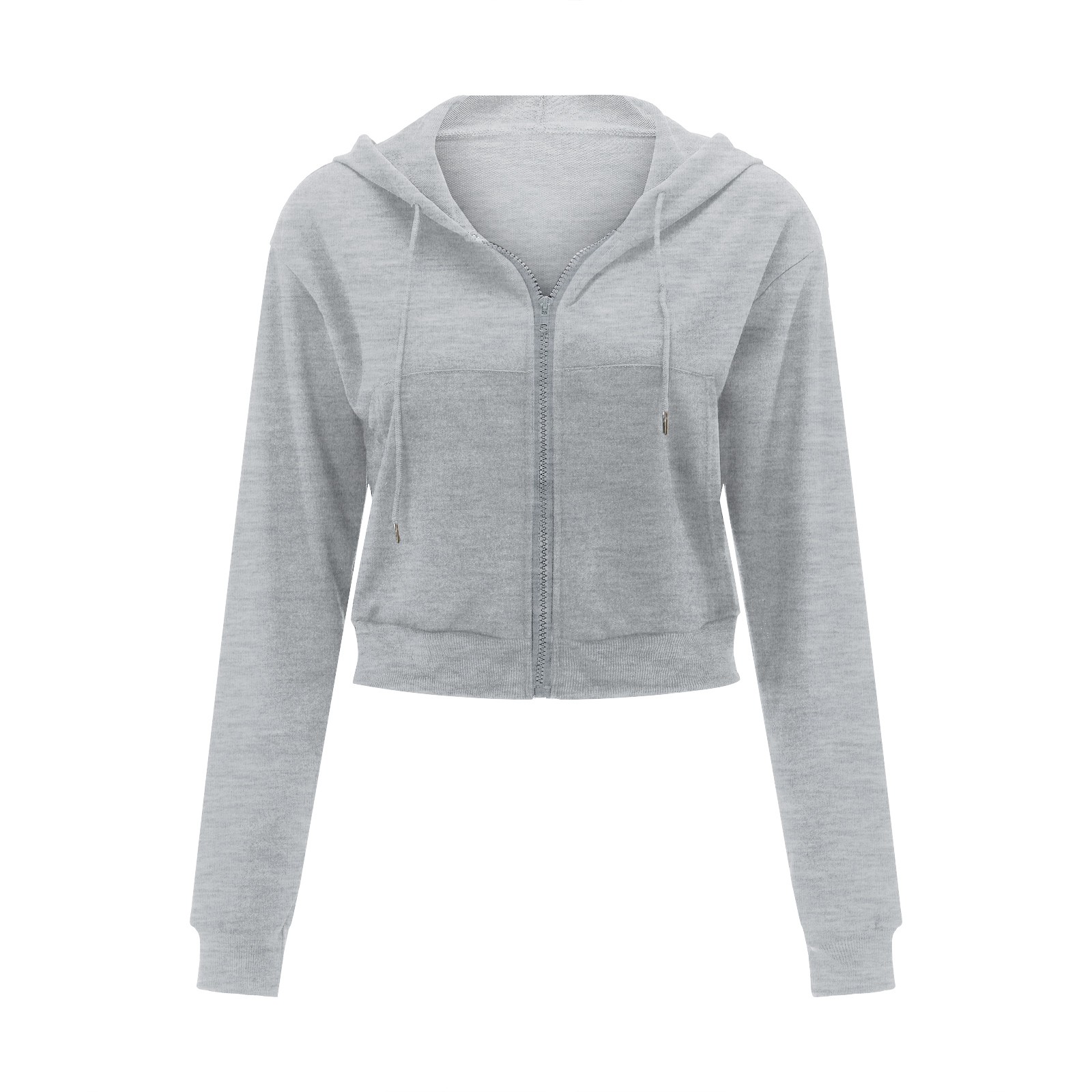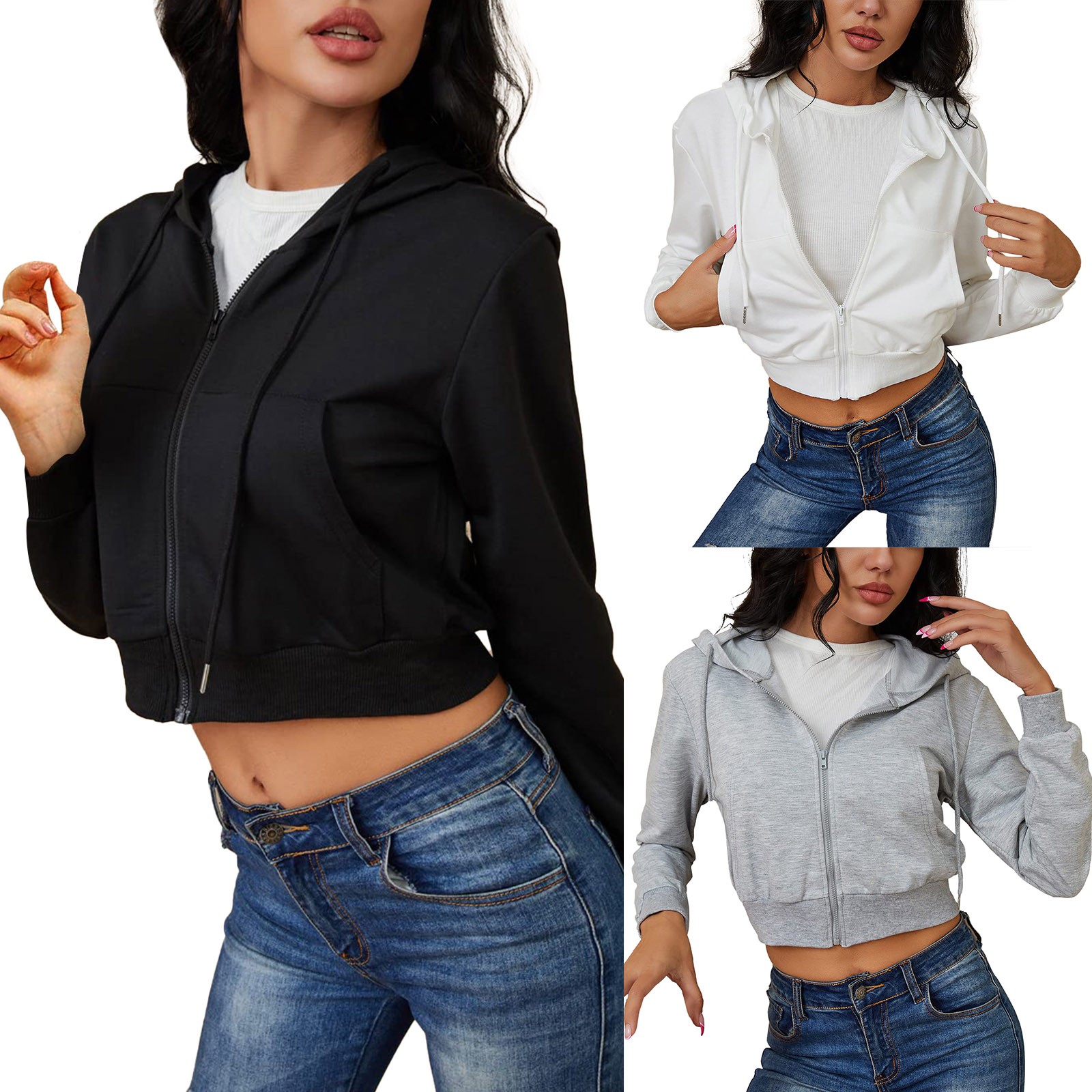 Women's Zip Up Cropped Hoodies Cardigan Jacket Drawstring Short Hooded Sweatshirts Casual Long Sleeve White Coat Girls Clothes